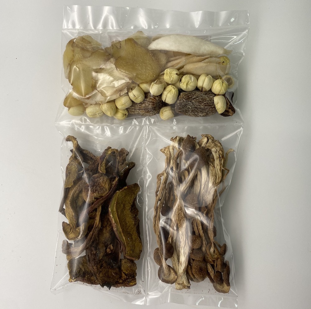 成份:牛肝菌、茶樹菇、淮山、海玉竹、白蓮子、蜜棗、陳皮。